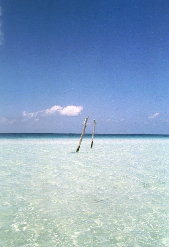 Onbewoonde eilandjes, extreem helder water en onwerkelijk wit zand. Alleen de palmbomen ontbreken nog. Je kunt er mooi snorkelen of gewoon wat relaxen. De foto’s zijn al iets ouder, met een ouderwetse analoge camera gemaakt, vandaar de korreligheid. Desondanks krijg je een goed beeld van hoe het er was. Ik hoop dat het nog steeds zo mooi is als toen. Ik heb via Google wat gezocht en het lijkt er wel op. Hier mijn foto’s van Cayo Blanco bij Varadero. Je komt er met een boottrip of catamaran.